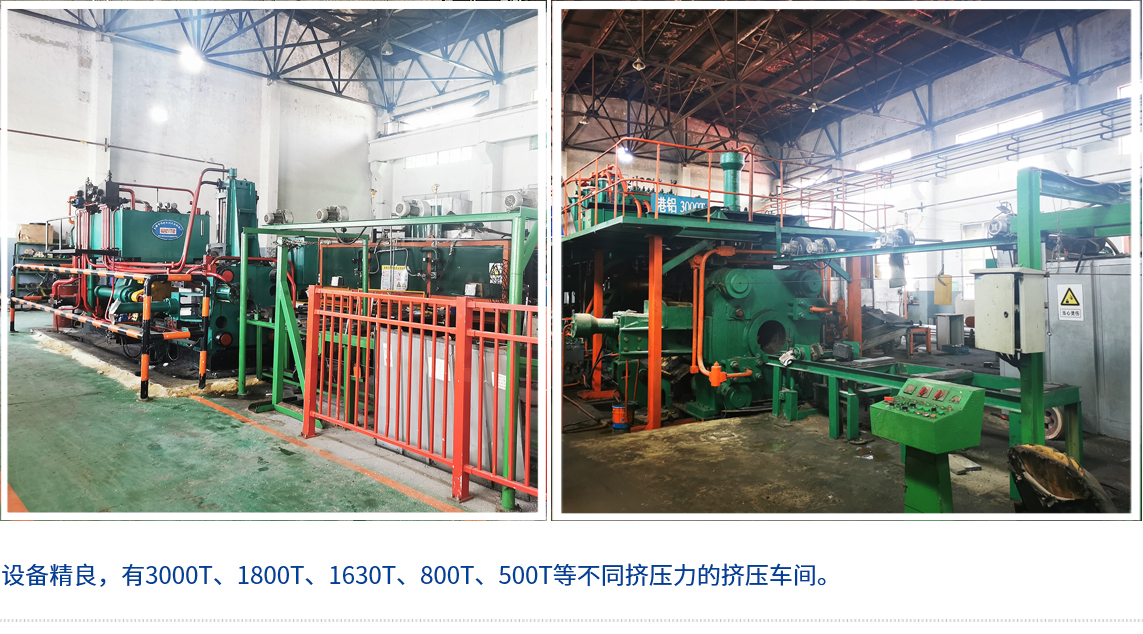 Advanced equipment, professional one-stop service 公司擁有立式鑄造的熔鑄車(chē)間:有3000T、1800T、1630T、800T、500T等不同擠壓力的擠壓車(chē)間;有給型材熱處理的時(shí)效爐、立式空氣循環(huán)淬火爐等各車(chē)間工序,可為您加工生產(chǎn)鋁合金建筑、工業(yè)、交通、電子、散熱器、裝飾、民用等多種規(guī)格及狀態(tài)的管、棒、異型材。